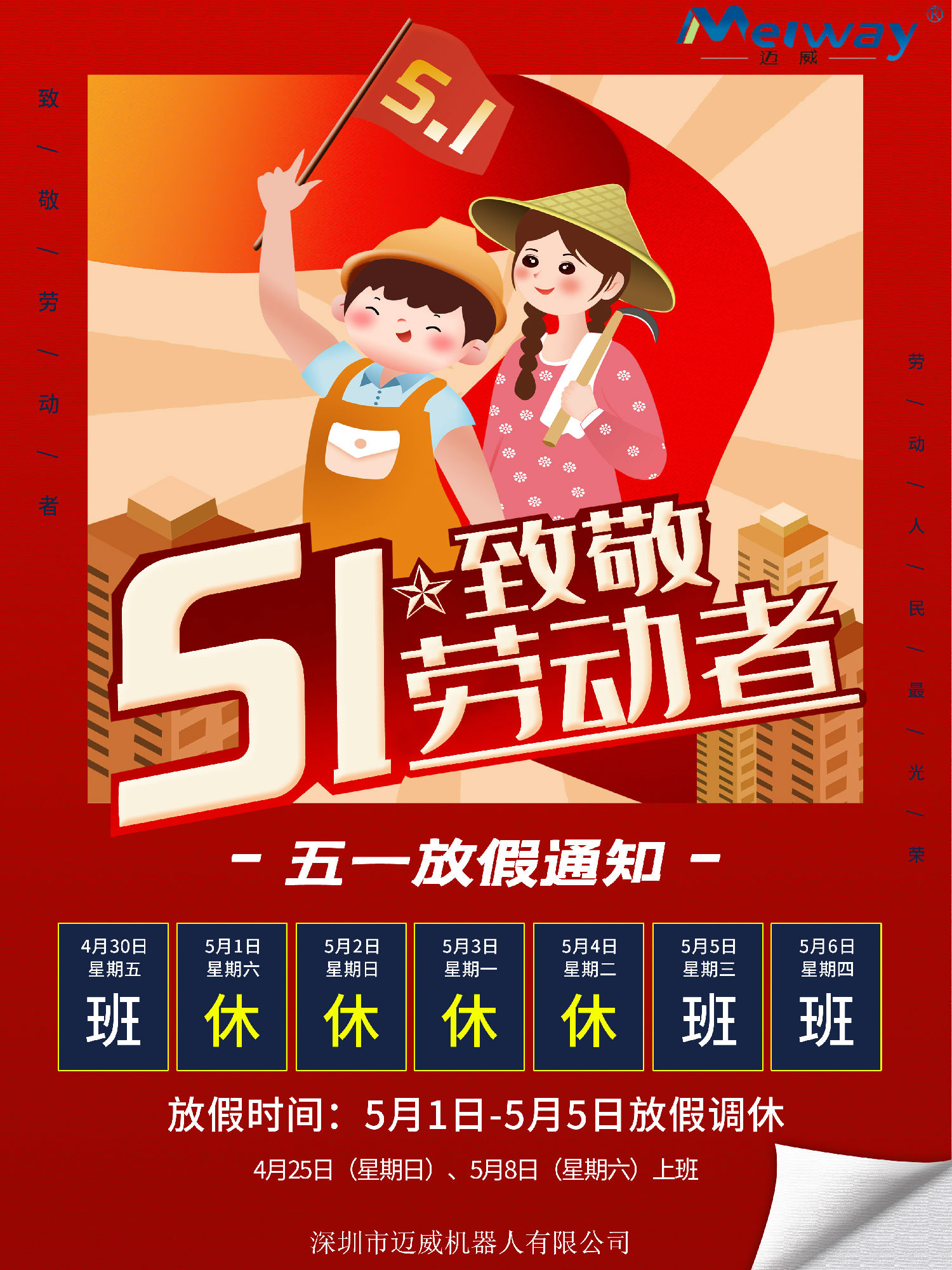 “勞動節(jié)”假期將至,根據(jù)國家節(jié)假日放假規(guī)定,并考慮公司的實際情況,現(xiàn)將2021年五一放假安排及相關(guān)事宜通知如下: