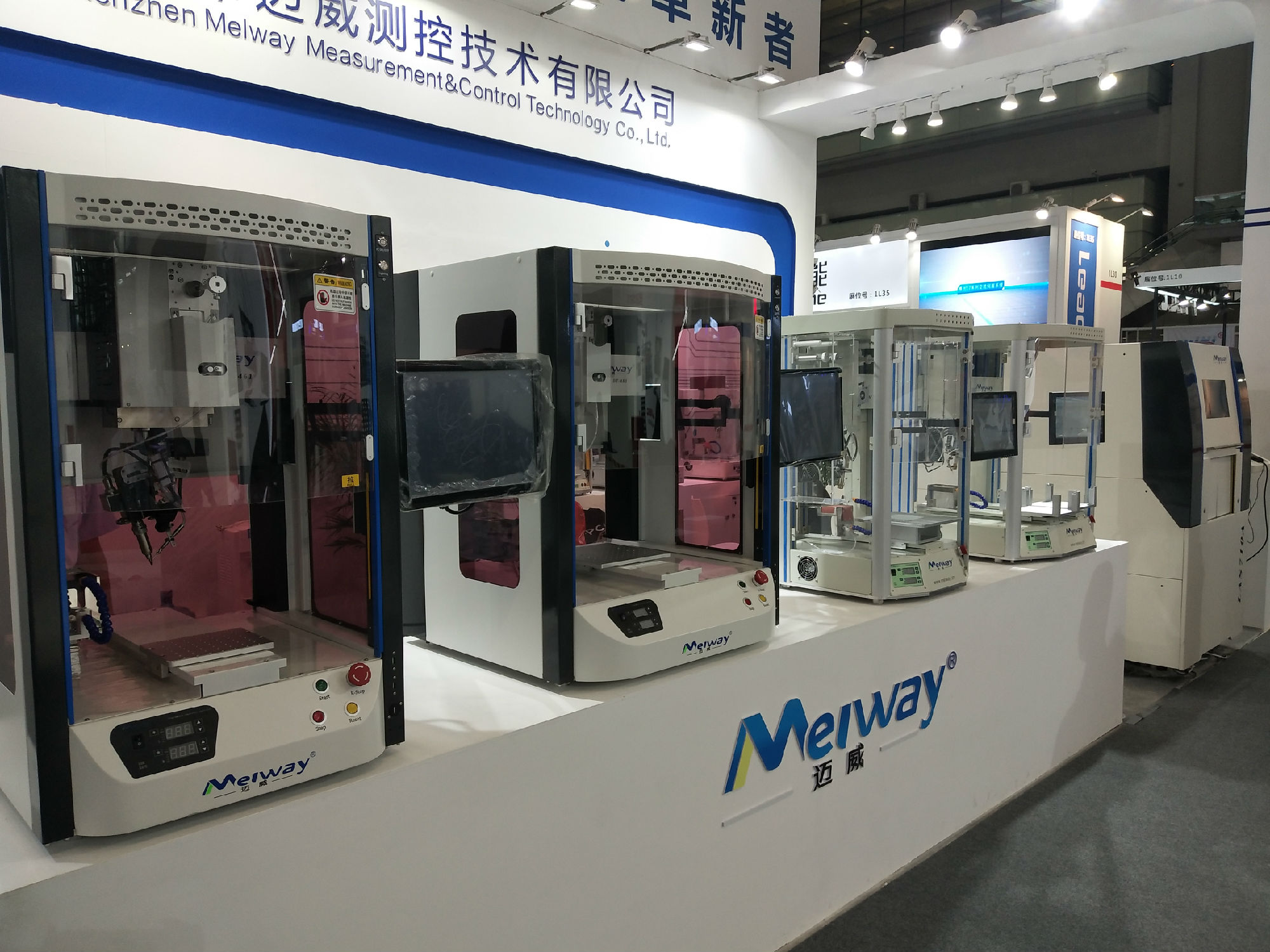 展會(huì)中,邁威展示了最新技術(shù)的自動(dòng)焊錫機(jī),包括第七代桌面式焊錫機(jī)、模組式在線焊錫機(jī)、激光焊錫機(jī)等,其中桌面式焊錫機(jī)、在線式焊錫機(jī)和激光焊錫機(jī)在展會(huì)現(xiàn)場吸引了大量客戶的關(guān)注。